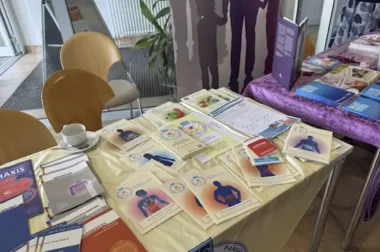Am 09.09.2025 hatte das Onkologische Zentrum des Klinikums Südstadt Rostock sowie das Tumorzentrum Rostock e.V. Patienten, Angehörige und alle Interessierten zu einem Patiententag an das Klinikum unter dem Motto „Zeit für Selbstfürsorge“ eingeladen. In entspannter Atmosphäre im Foyer oder in Fachvorträgen im Hörsaal gaben Experten Einblicke in die Krebsbehandlung bzw. die Krebsbewältigung und beleuchteten dabei wichtige Aspekte. Themen wie beispielsweise eine achtsame Ernährung als Kraftquelle nach Krebsdiagnose oder das Entdecken persönlicher Ressourcen waren angesagt. Alternativ wurde eine Klangschalen-Therapie angeboten. Neben den vielfältigen Vorträgen konnten die Gäste ein begehbares Darmmodell oder ein Brustmodell praxisnah erkunden. Ziel war es, den Betroffenen und ihren Angehörigen neue Impulse für den Umgang mit der Erkrankung zu geben. Als Vertreter des AdP beteiligten wir uns mit einem kleinen AdP-Stand im Foyer des Hörsaales. Hier standen wir in den Pausen und nach den Vorträgen den Betroffenen und den Interessierten für Gespräche zur Verfügung. Frau Bolanger (Verein: Frauen mit Mut) und ihr musikalischer Begleiter sorgten mit Liedern und Melodien für eine kurzweilige Unterhaltung.